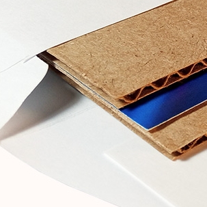 Между двумя слоями гофрокартона в конверт с отметкой "не сгибать".