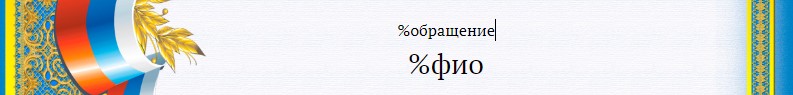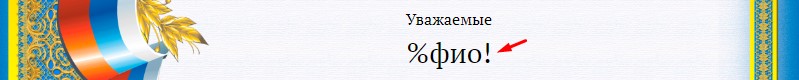 В то место, где у нас написано обращение к родителям поставим метку %фио, при этом удалив оригинальный текст, но оставив восклицательный знак.