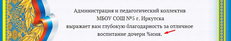 На место имени ученицы - %имя.