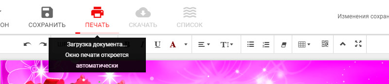 Теперь можно печатать или сохранять готовый документ - нажимаем на соответствующую кнопку панели инструментов.