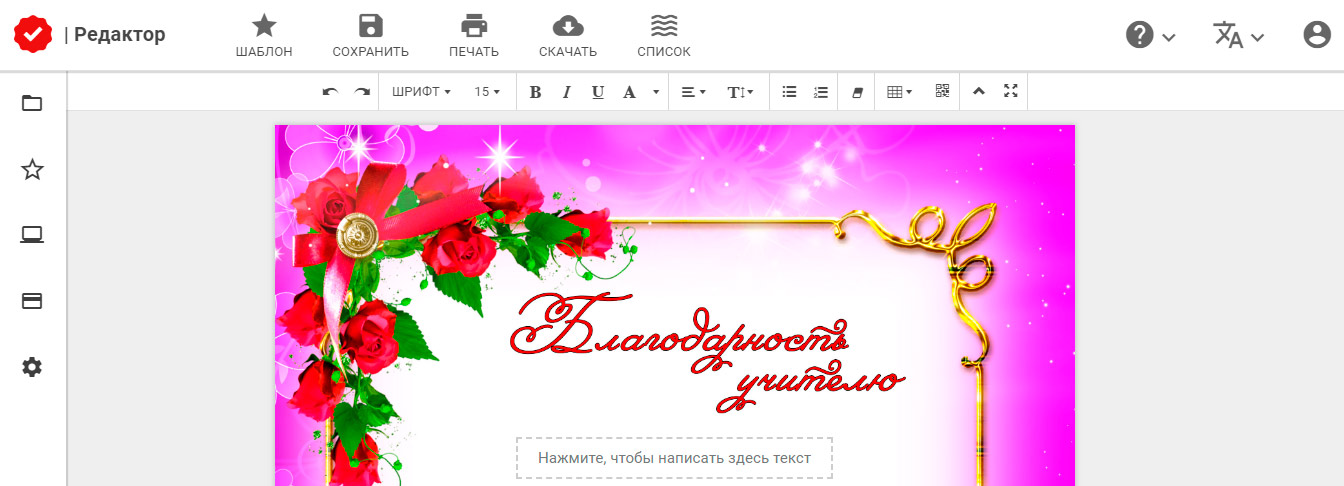Как создать благодарность учителю в онлайн-редакторе?