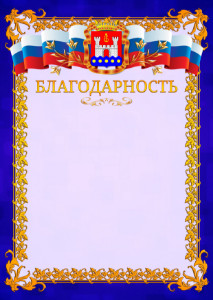 КалининградНа этой странице отображаются благодарности с гербом Калининградской области. Вы можете скачать бесплатно шаблон с гербом Калининградской области, представленный на этой странице, заполненный в онлайн-редакторе. Выберите любой шаблон, чтобы узнать больше.