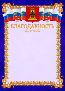 ТверьНа этой странице отображаются благодарности с гербом Тверской области. Вы можете скачать бесплатно шаблон с гербом Тверской области, представленный на этой странице, заполненный в онлайн-редакторе. Выберите любой шаблон, чтобы узнать больше.