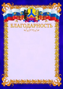 Благодарность для школы с гербом Хабаровска. Отлично подходит для награждения учащихся или учителей осенью - во время первой и второй четвертей. Шаблон могут использовать школы Хабаровска, а так же гимназии, училища, лицеи и детские сады. Благодарность украшена осенними листьями. В заголовке шаблона - герб Хабаровска. Название организации можно разместить как под заголовком "Благодарность", так и до него. Скачайте осенний шаблон для школы с гербом Хабаровска с нашего сайта, предварительно заполнив его в редакторе.