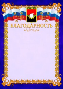 Благодарность для школы с гербом Кемерово. Отлично подходит для награждения учащихся или учителей осенью - во время первой и второй четвертей. Шаблон могут использовать школы Кемерово, а так же гимназии, училища, лицеи и детские сады. Благодарность украшена осенними листьями. В заголовке шаблона - герб Кемерово. Название организации можно разместить как под заголовком "Благодарность", так и до него. Скачайте осенний шаблон для школы с гербом Кемерово с нашего сайта, предварительно заполнив его в редакторе.
