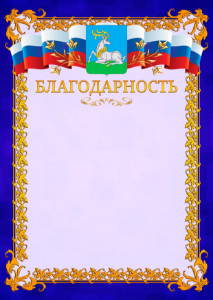 Шаблон официальной благодарности №16 c гербом Одинцово