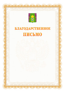 Шаблон официальной благодарности №16 c гербом Пушкино