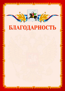 Официальная благодарность с гербом Клина. В заголовке шаблона размещён герб Клина. Шаблон благодраности обрамлён декоративными элементами. Фон - светло розовый, с небольшим градиентом. Благодарность можно заполнить онлайн и изготовить самостоятельно или в фотоцентре. Шаблон подходит для различных событий Клина.