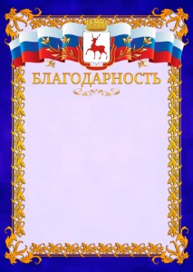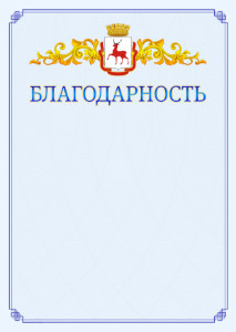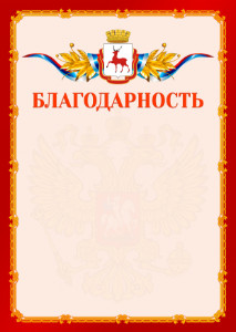 Благодарность для школы с гербом Нижнего Новгорода. Отлично подходит для награждения учащихся или учителей осенью - во время первой и второй четвертей. Шаблон могут использовать школы Нижнего Новгорода, а так же гимназии, училища, лицеи и детские сады. Благодарность украшена осенними листьями. В заголовке шаблона - герб Нижнего Новгорода. Название организации можно разместить как под заголовком "Благодарность", так и до него. Скачайте осенний шаблон для школы с гербом Нижнего Новгорода с нашего сайта, предварительно заполнив его в редакторе.