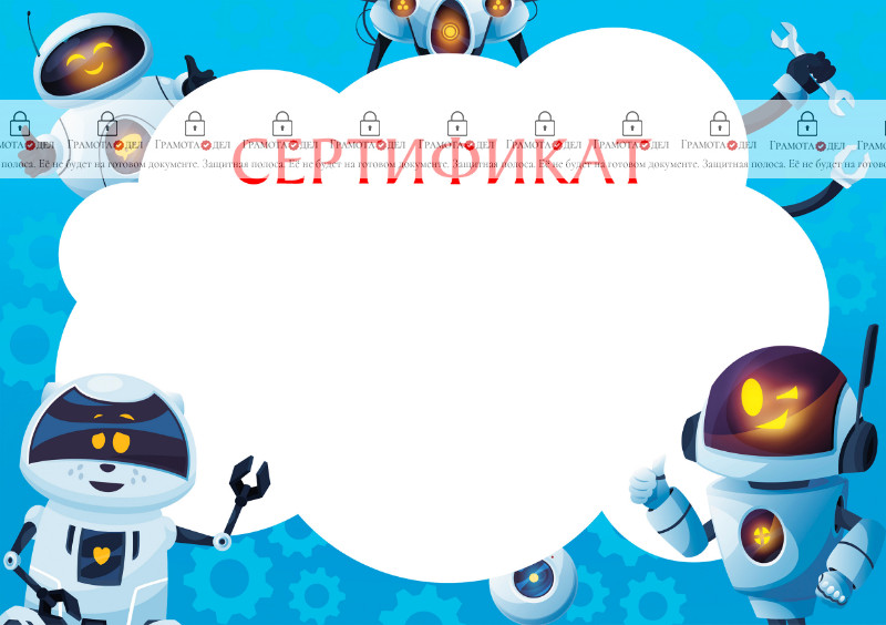Шаблон детского сертификата "Весёлые роботы" отлично подойдет для различных мероприятий, связанных с роботами, робототехникой, конструкторами.