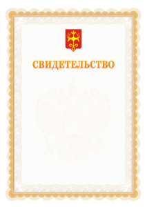 Сертификат с гербом Майкопа оформлен красивой гильоширной рамкой бежевого и жёлтого цветов. На фоне - герб Российской Федерации. Сертификат предназначен для использования организациями Майкопа - администрациями, школами, детскими садами и другими учереждениями. В заголовке сертификата - герб Майкопа. Вы можете скачать бесплатно шаблон сертификата, заполнив его предварительно в онлайн-редакторе.