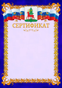 Сертификат выполнен в официальном стиле. В заголовке размещен герб Ельца, украшеный золотыми ветками. Фон шаблона - светло-синий с гильоширной сеткой, оформлен фигурной синей рамкой. Шаблон сертификата подходит для любых официальных событий и мероприятий Ельца. и может использоваться администрациями и другими органами власти, школами и детскими садами Ельца.