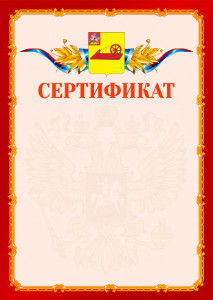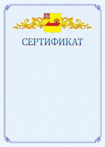 Сертификат с гербом Ногинска оформлен красивой гильоширной рамкой бежевого и жёлтого цветов. На фоне - герб Российской Федерации. Сертификат предназначен для использования организациями Ногинска - администрациями, школами, детскими садами и другими учереждениями. В заголовке сертификата - герб Ногинска. Вы можете скачать бесплатно шаблон сертификата, заполнив его предварительно в онлайн-редакторе.