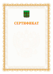 Шаблон сертификата предназначен для различных музыкальных конкурсов или событий Пензы. Светлый и яркий шаблон, украшенный нотным станом и ос скрипичным ключём в нижней части шаблона. В заголовке - герб Пензы. Сертификат может быть использован на музыкальных конкурсах регионального масштаба, в городских школах искусств.