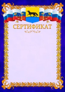 Сертификат с гербом Сургута для официальных событий и мероприятий. В заголовке шаблона размещён герб Сургута. Шаблон сертификата обрамлён декоративными элементами. Фон - светло розовый, с небольшим градиентом. Сертификат можно заполнить онлайн и изготовить самостоятельно или в фотоцентре. Шаблон подходит для различных событий Сургута.