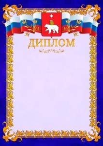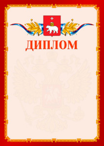 Диплом с гербом Перми оформлен красивой гильоширной рамкой бежевого и жёлтого цветов. На фоне - герб Российской Федерации. Диплом предназначен для использования организациями Перми - администрациями, школами, детскими садами и другими учереждениями. В заголовке диплома - герб Перми. Вы можете скачать бесплатно шаблон диплома, заполнив его предварительно в онлайн-редакторе.