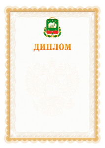 Диплом с гербом Мичуринска и флагом Российской Федерации в виде двусторонней ленты, украшенные золотыми веточками. Основной фон диплома - светлый, однотонный. Шаблон оформлен изящной золотистой рамкой с кленовыми листьями и окантовкой темно-синего цвета. Шаблон диплома с гербом Мичуринска можно использовать для награждения на различных региональных событиях и мероприятиях. Скачайте этот шаблон с гербом Мичуринска с нашего онлайн конструктора дипломов.