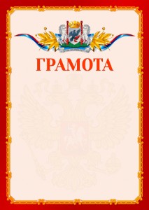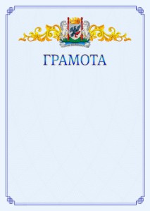 Грамота с гербом Якутска и флагом Российской Федерации в виде двусторонней ленты, украшенные золотыми веточками. Основной фон грамоты - светлый, однотонный. Шаблон оформлен изящной золотистой рамкой с кленовыми листьями и окантовкой темно-синего цвета. Шаблон грамоты с гербом Якутска можно использовать для награждения на различных региональных событиях и мероприятиях. Скачайте этот шаблон с гербом Якутска с нашего онлайн конструктора грамот.