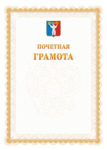 Грамота для школы с гербом Норильска. Отлично подходит для награждения учащихся осенью - во время первой и второй четвертей. Шаблон могут использовать школы Норильска, а так же гимназии, училища, лицеи и детские сады. Грамота украшена осенними листьями. В заголовке шаблона - герб Норильска. Название организации можно разместить как под заголовком "Грамота", так и до него. Скачайте осенний шаблон для школы с гербом Норильска с нашего сайта, предварительно заполнив его в редакторе.