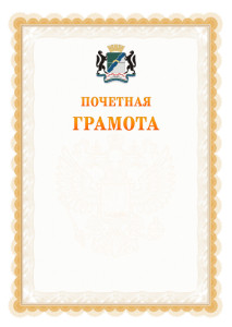 Грамота для школы с гербом Новосибирска. Отлично подходит для награждения учащихся осенью - во время первой и второй четвертей. Шаблон могут использовать школы Новосибирска, а так же гимназии, училища, лицеи и детские сады. Грамота украшена осенними листьями. В заголовке шаблона - герб Новосибирска. Название организации можно разместить как под заголовком "Грамота", так и до него. Скачайте осенний шаблон для школы с гербом Новосибирска с нашего сайта, предварительно заполнив его в редакторе.