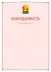 Грамота с гербом Соликамска для официальных событий и мероприятий. В заголовке шаблона размещён герб Соликамска. Шаблон грамоты обрамлён декоративными элементами. Фон - светло розовый, с небольшим градиентом. Грамоту можно заполнить онлайн и изготовить самостоятельно или в фотоцентре. Шаблон подходит для различных событий Соликамска.