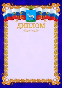Грамота с гербом Самары и флагом Российской Федерации в виде двусторонней ленты, украшенные золотыми веточками. Основной фон грамоты - светлый, однотонный. Шаблон оформлен изящной золотистой рамкой с кленовыми листьями и окантовкой темно-синего цвета. Шаблон грамоты с гербом Самары можно использовать для награждения на различных региональных событиях и мероприятиях. Скачайте этот шаблон с гербом Самары с нашего онлайн конструктора грамот.