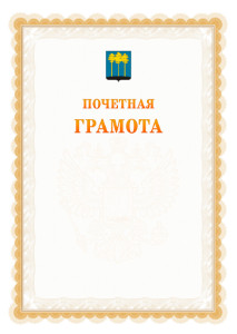 Шаблон грамоты предназначен для различных музыкальных конкурсов или событий Димитровграда. Светлый и яркий шаблон, украшенный нотным станом и ос скрипичным ключём в нижней части шаблона. В заголовке - герб Димитровграда. Грамота может быть использована на музыкальных конкурсах регионального масштаба, в городских школах искусств.
