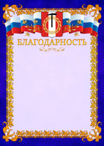 Грамота с гербом Копейска и флагом Российской Федерации в виде двусторонней ленты, украшенные золотыми веточками. Основной фон грамоты - светлый, однотонный. Шаблон оформлен изящной золотистой рамкой с кленовыми листьями и окантовкой темно-синего цвета. Шаблон грамоты с гербом Копейска можно использовать для награждения на различных региональных событиях и мероприятиях. Скачайте этот шаблон с гербом Копейска с нашего онлайн конструктора грамот.
