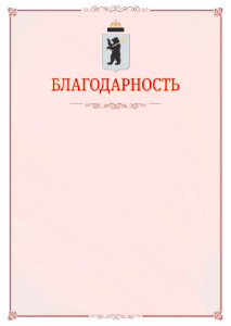 Грамота с гербом Ярославля для официальных событий и мероприятий. В заголовке шаблона размещён герб Ярославля. Шаблон грамоты обрамлён декоративными элементами. Фон - светло розовый, с небольшим градиентом. Грамоту можно заполнить онлайн и изготовить самостоятельно или в фотоцентре. Шаблон подходит для различных событий Ярославля.