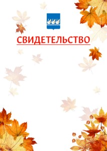 Свидетельство с гербом Стерлитамака и флагом Российской Федерации в виде двусторонней ленты, украшенные золотыми веточками. Основной фон свидетельства - светлый, однотонный. Шаблон оформлен изящной золотистой рамкой с кленовыми листьями и окантовкой темно-синего цвета. Скачайте этот шаблон с гербом Стерлитамака с нашего онлайн конструктора свидетельств.