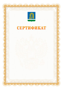 Свидетельство с гербом Октябрьского оформлен красивой гильоширной рамкой бежевого и жёлтого цветов. На фоне - герб Российской Федерации. Свидетельство предназначено для использования организациями Октябрьского - администрациями, школами, детскими садами и другими учереждениями. В заголовке свидетельства - герб Октябрьского. Вы можете скачать бесплатно шаблон свидетельства, заполнив его предварительно в онлайн-редакторе.