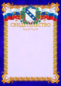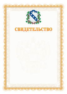 Шаблон свидетельства выполнен в официальном стиле. В заголовке размещен герб Курска, украшеный золотыми ветками. Фон шаблона - светло-синий с гильоширной сеткой. Шаблон оформлен фигурной синей рамкой. Шаблон свидетельства подходит для любых официальных событий и мероприятий Курска. Может использоваться администрациями и другими органами власти, школами и детскими садами Курска.