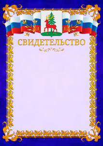 Шаблон свидетельства выполнен в официальном стиле. В заголовке размещен герб Ельца, украшеный золотыми ветками. Фон шаблона - светло-синий с гильоширной сеткой. Шаблон оформлен фигурной синей рамкой. Шаблон свидетельства подходит для любых официальных событий и мероприятий Ельца. Может использоваться администрациями и другими органами власти, школами и детскими садами Ельца.