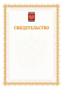 Свидетельство для школы с гербом Дзержинска. Отлично подходит для выдачи осенью - во время первой и второй четвертей. Шаблон могут использовать школы Дзержинска, а так же гимназии, училища, лицеи и детские сады. Свидетельство украшено осенними листьями. В заголовке шаблона - герб Дзержинска. Название организации можно разместить как под заголовком "Свидетельство", так и до него. Скачайте осенний шаблон для школы с гербом Дзержинска с нашего сайта, предварительно заполнив его в редакторе.