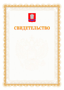 Шаблон свидетельства выполнен в официальном стиле. В заголовке размещен герб Новотроицка. Флаг Российской Федерации в виде вьющейся ленты и герб Новотроицка украшены золотыми ветками лавра. Фон шаблона - светлый, с полупрозрачным изображением герба Россйской Федерации. Шаблон оформлен красной окантовкой и фигурной золотой рамкой. Шаблон свидетельства подходит для любых официальный событий и мероприятий. Вы можете скачать бесплатно свидетельство с гербом Новотроицка, заполнив его в онлайн-редакторе.
