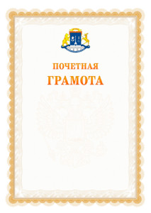 Свидетельство с гербом Северо-восточного административного округа Москвы оформлен красивой гильоширной рамкой бежевого и жёлтого цветов. На фоне - герб Российской Федерации. Свидетельство предназначено для использования организациями Северо-восточного административного округа Москвы - администрациями, школами, детскими садами и другими учереждениями. В заголовке свидетельства - герб Северо-восточного административного округа Москвы. Вы можете скачать бесплатно шаблон свидетельства, заполнив его предварительно в онлайн-редакторе.